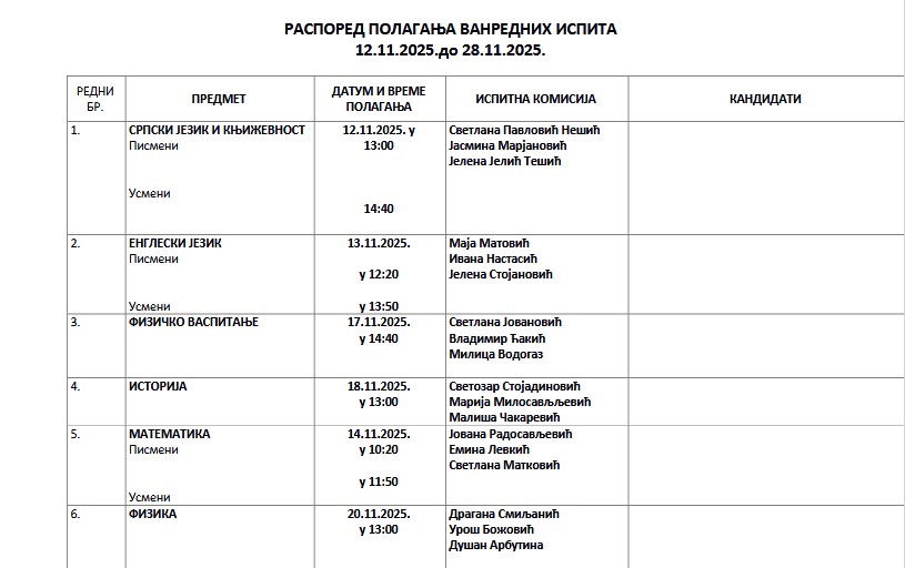 Ученици који похађају наставу у црвеној смени (подручја рада економија и производња и прерада хране) полазе у школу 1. септембра 2025. године пре подне са
